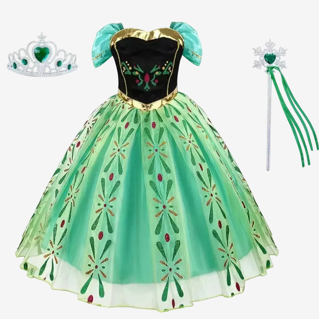 Sua princesa não vai apenas usar o vestido, mas todo o conjunto encantador que acompanha a fantasia: