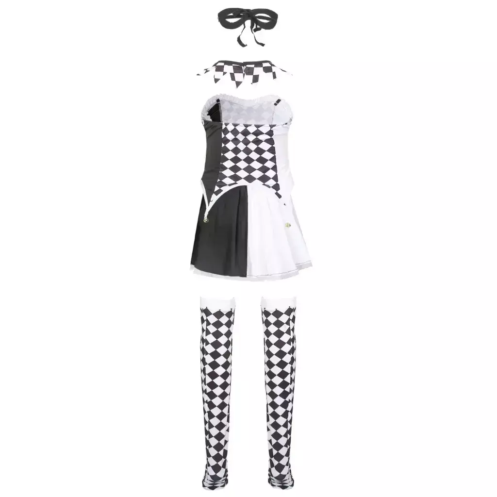 Pacote incluí: Roupa, saia, meias, máscara e anel do pescoço (peruca não incuída)