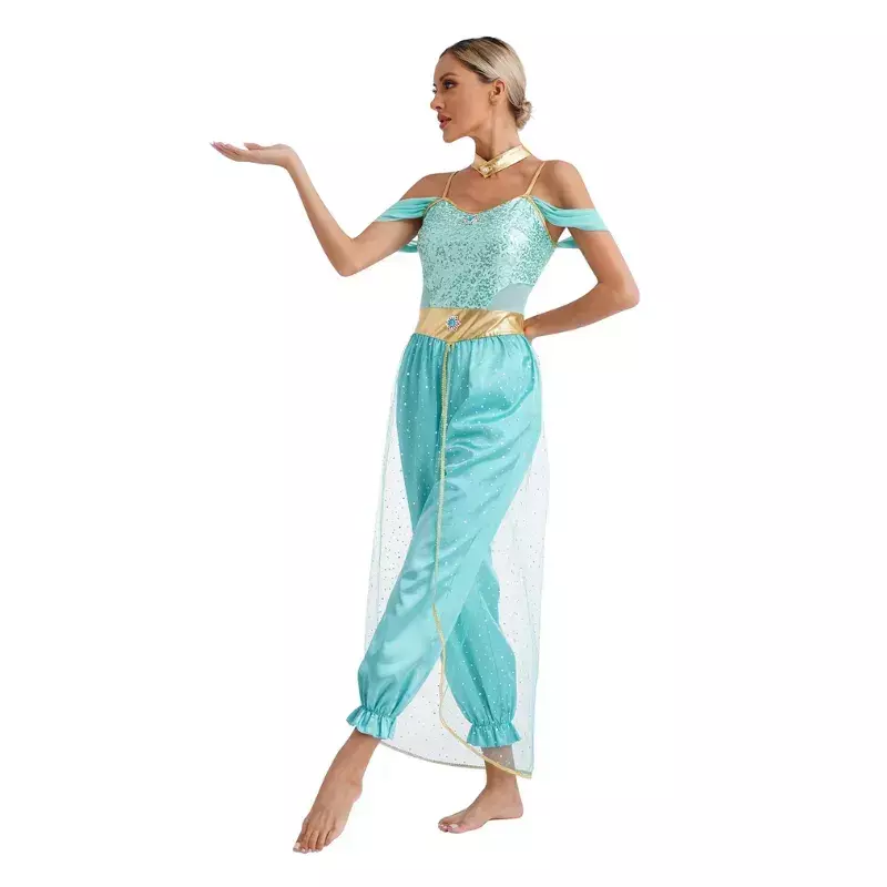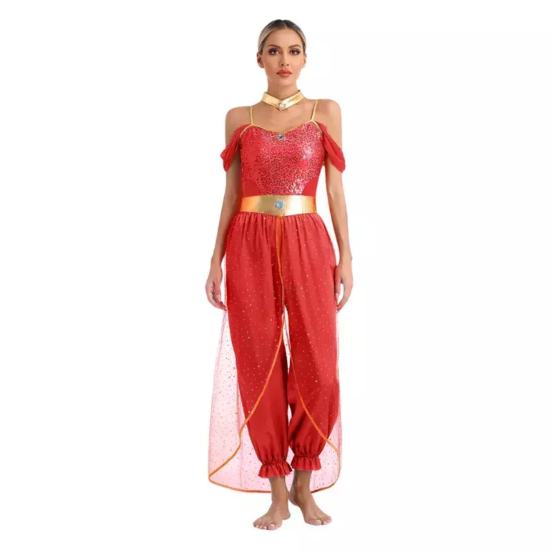 Detalhes cuidadosamente elaborados que destacam o estilo da dança do ventre e o visual inspirado nas princesas árabes.