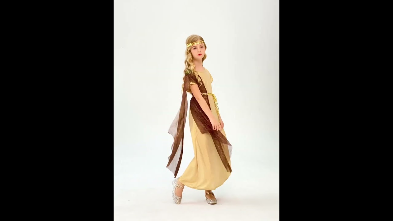 Esta fantasia é uma verdadeira obra-prima que combina o esplendor da moda grega com o charme enigmático do Egito. Com um vestido em um sofisticado tom de marrom, a fantasia exala um ar de riqueza e majestade.