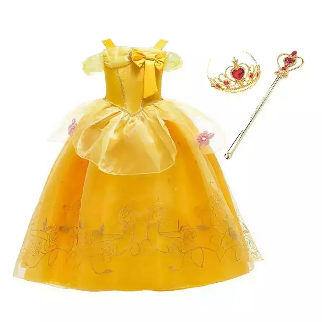 Com detalhes delicados e luxuosos, a fantasia remete fielmente ao vestido da Bela, proporcionando momentos mágicos e inesquecíveis. Ideal para aniversários, festas à fantasia, Halloween, Carnaval ou brincadeiras em casa.